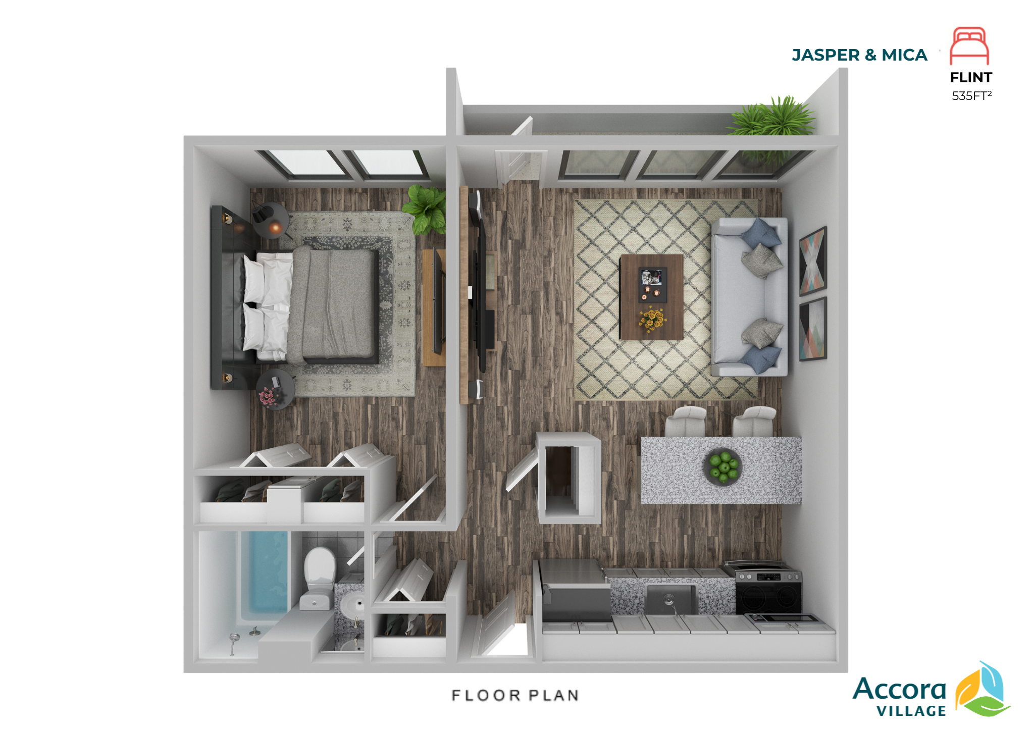 Find yourself in one of our Mica one-bedroom apartments living your best life. Stretch out indoors and on your private balcony. Enjoy the convenience of being close to bike and nature trails in Andrew Haydon Park and Britannia Beach, or dive into one of the many Accora Centre swimming, fitness, or recreational activities. You’ll wonder why it took you so long to find the Mica.